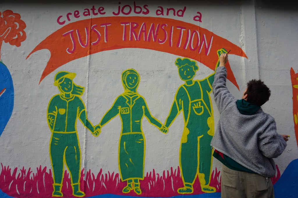 The design of the mural was informed by the Five Demands of a Green New Deal