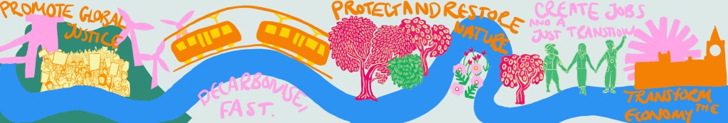 A 16 Metre Mural depicting the demands of youth climate activism organisation, Green New Deal Rising.