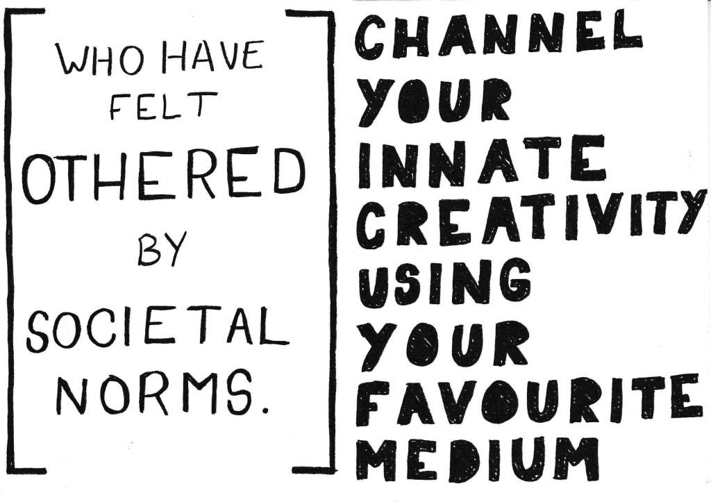 Pg.2. ‘Who have felt othered by societal norms. Channel your innate creativity with your favourite medium.’