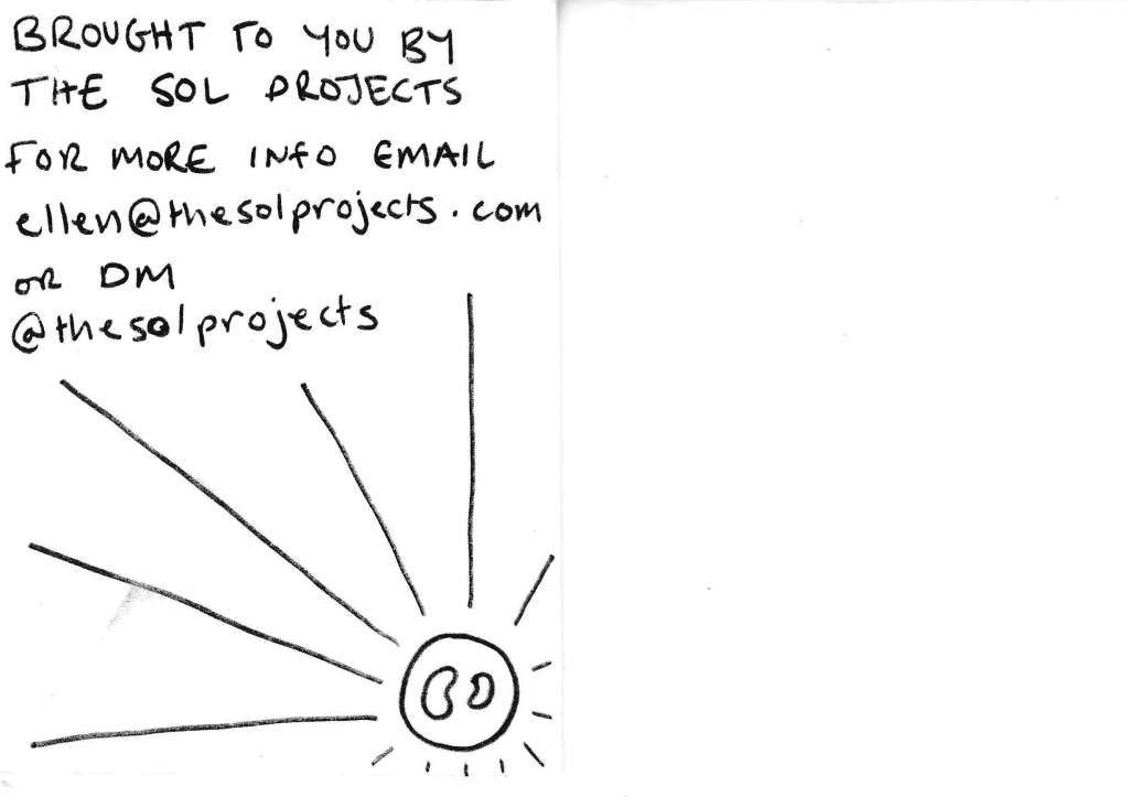 Back Cover. ‘Brought to you by the Sol Projects. For more info email ellen@thesolprojects.com or DM @thesolprojects’